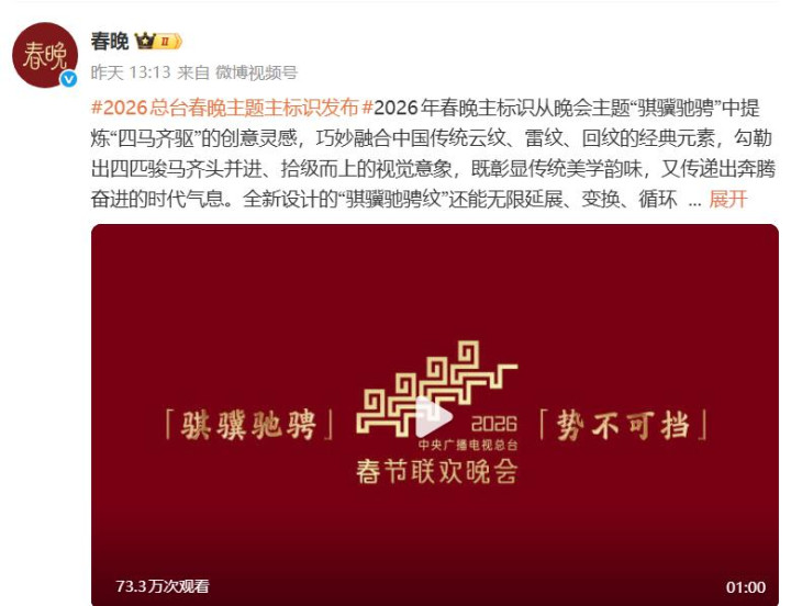 2025年12月10号,央视春晚发布了今年春晚的主题和主标识。